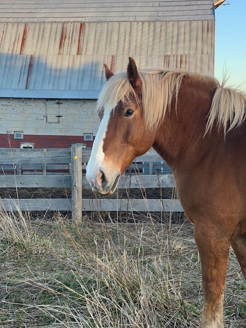 Thor is a Clydesdale Belgian Cross who has experinced trauma in his life and has come out of it stronger. Thor is nothing if not a gentle giant who love attention.