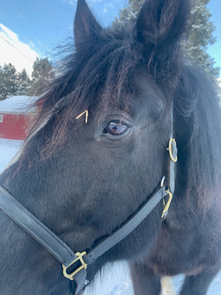 Knight is the newest addition to the farm and is learning how to settle into a new environment. He is a Friesian X Belgian cross and he can’t wait to start his new job of helping others.